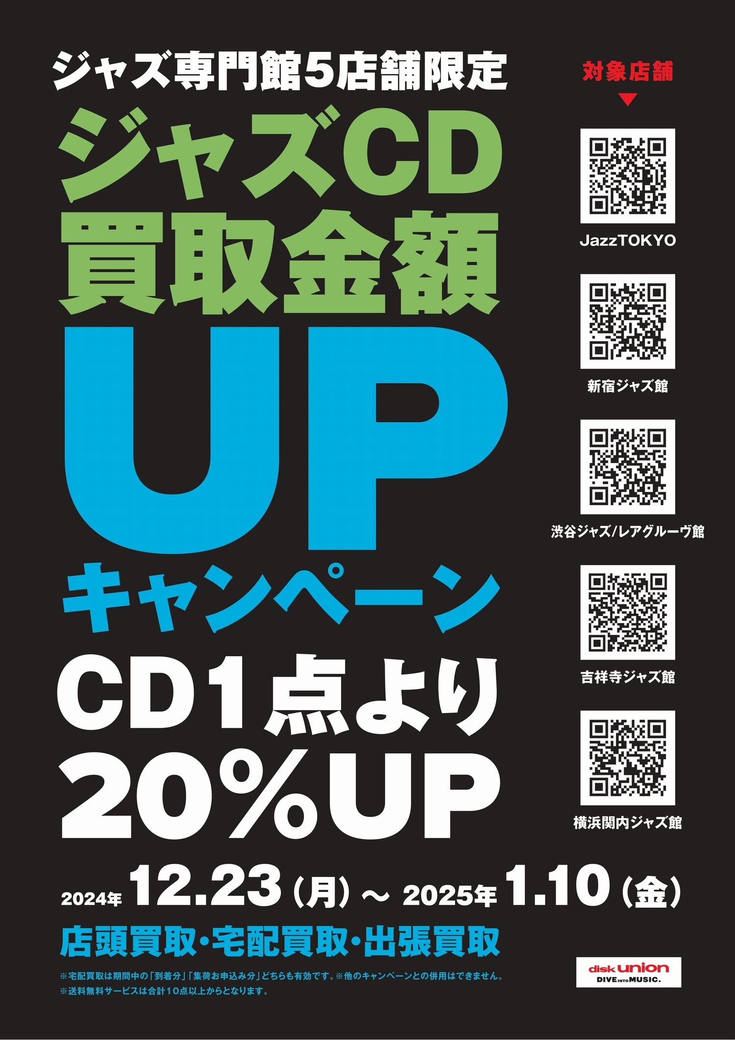 ディスクユニオン全店及びディスクユニオン買取センターに映画DVD・Blu-ray(ブルーレイ)を期間中まとめて10点以上お売りいただくと、通常買取査定金額に20%プラスして買取いたします。